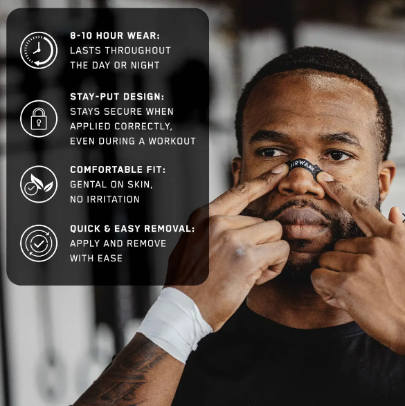 Features: Flexible fit · Opens nasal passage · Sweat-proof adhesive · Performance-focused design